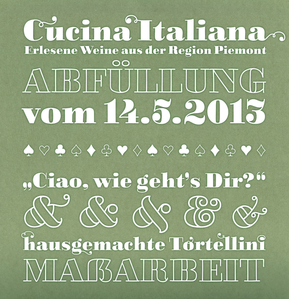 Feature-wise, we went the full quattro stagioni: Variations and alternatives for many letters, swashy initials and swirly ligatures—plus language support that goes way beyond English and Italiano.